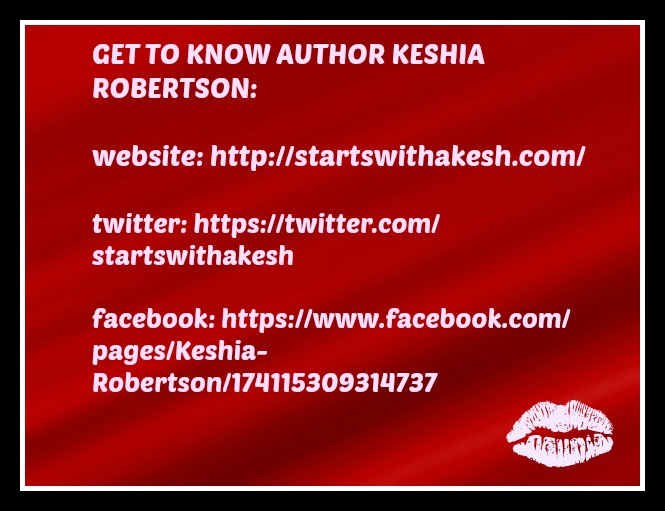 Author Keshia Robertson hails from Toronto, Canada where she writes fresh sensual to erotic contemporary romance with a multicultural twist. When she isn’t crafting stories of sexy heroes and witty heroines you can find her on twitter @startswithakesh or on her website startswithakesh.com discussing her preferred writing techniques or the latest episode of a Korean drama.